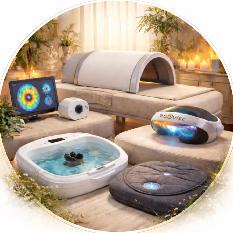 In addition to massage, bodywork, and healing arts, Rise Wellness offers innovative wellness technologies designed to support relaxation, recovery, and whole-body balance.Availability of wellness technologies may vary by practitioner and session type.